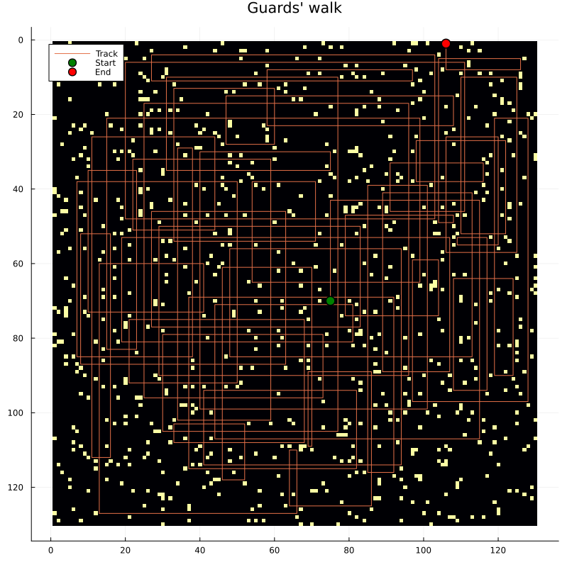 scatter!([track[end][2]], [track[end][1]], color=:red, label="End")