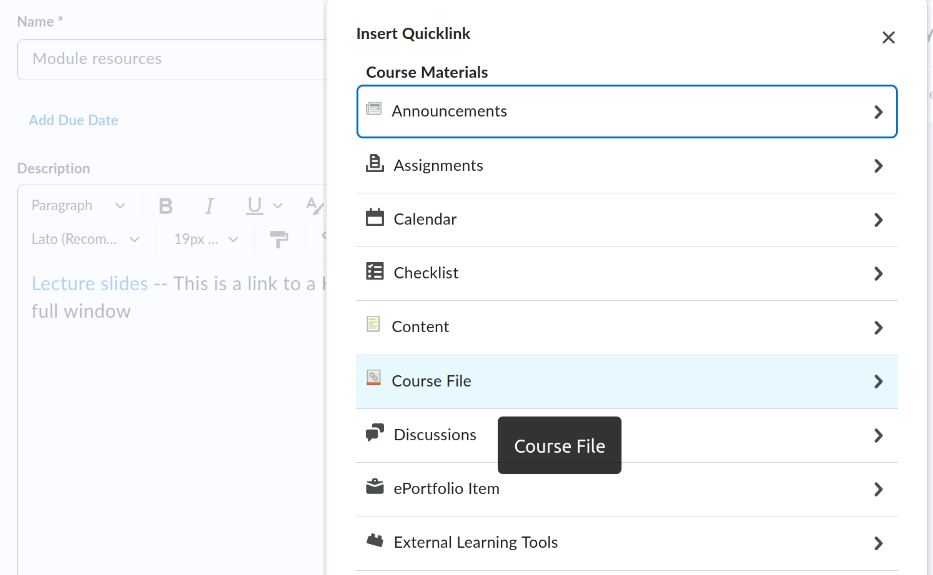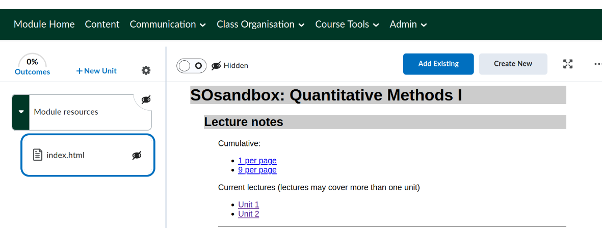 Once you have HTML and other files in the “Course File” area, it takes a step or two to make them visible to students.